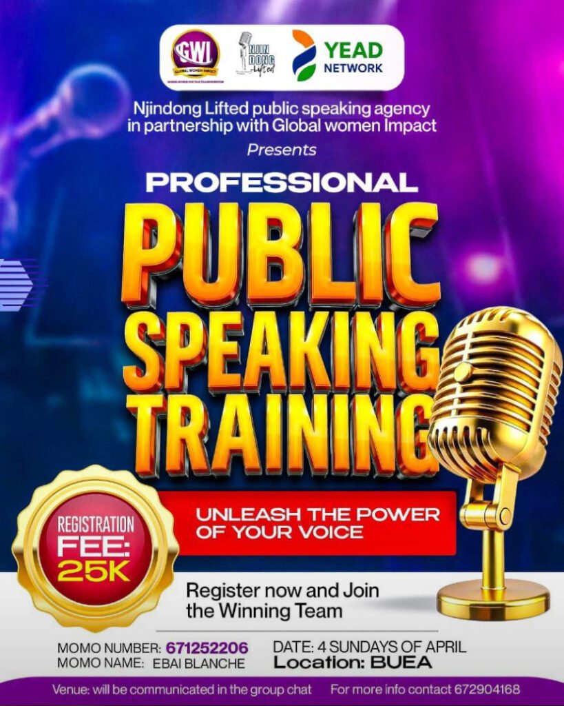 Our Professional Public Speaking Training in partnership with Njindong Lifted and Yead network is currently in full swing this April, running every Sunday to help you speak with confidence, clarity, and impact.